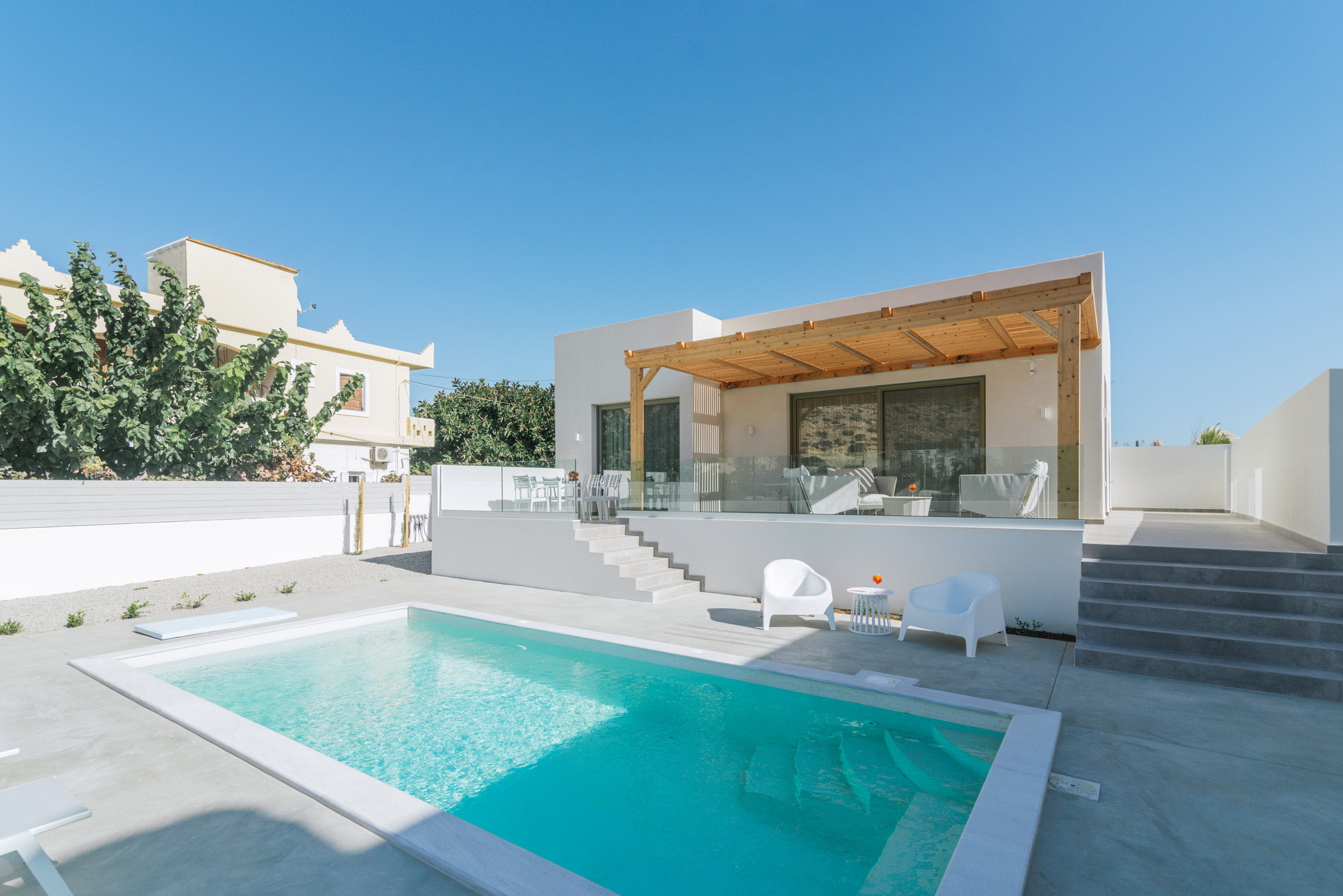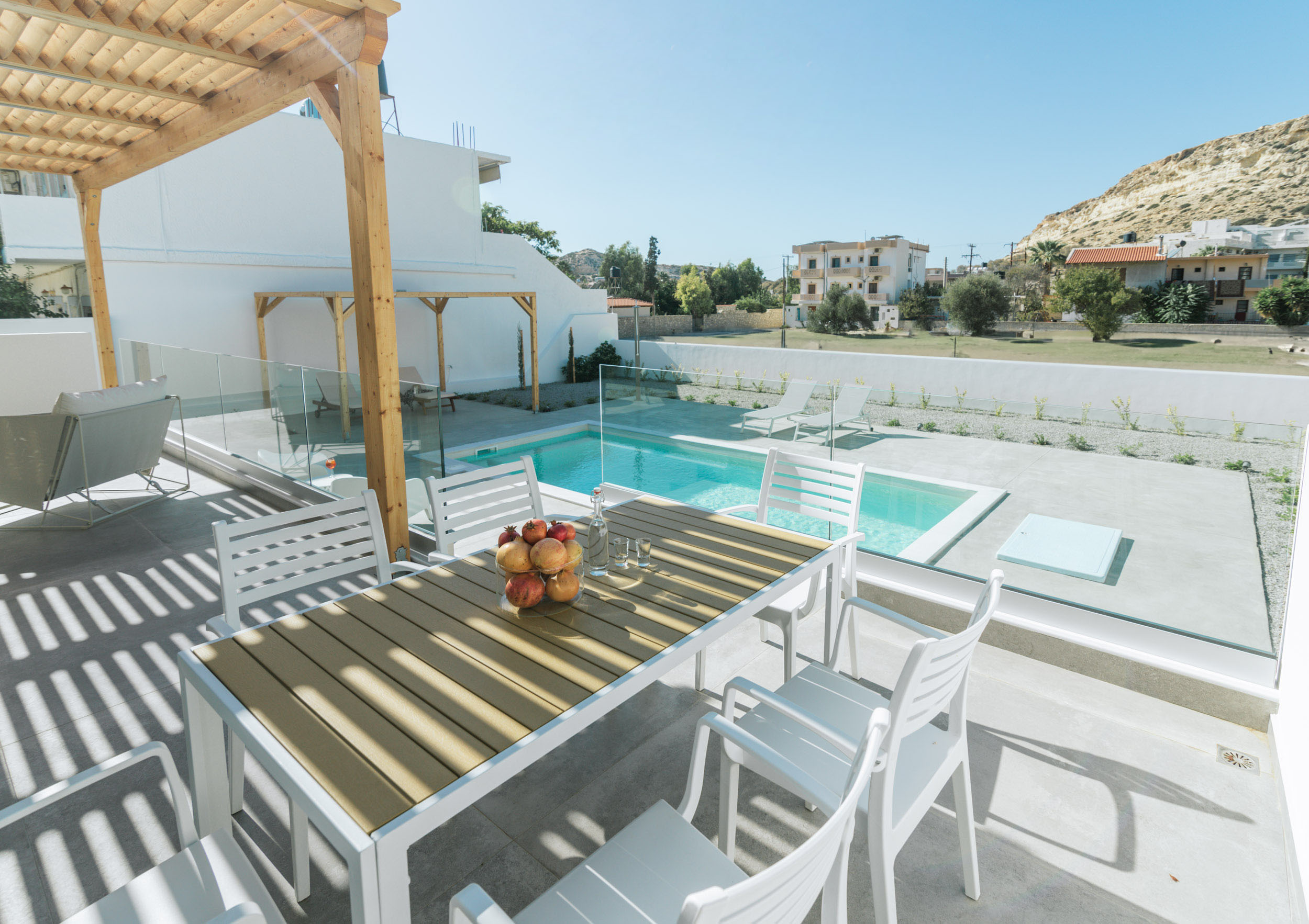 This elegant retreat features two spacious bedrooms, comfortably accommodating up to five guests. The villa is equipped with modern amenities including a fully-equipped kitchen, laundry facilities, wifi and ample parking. Outside, guests can relax by the private swimming pool, enjoying the serene surroundings that offer peace and calmness. Perfectly blending rustic charm with contemporary comforts, our villa provides an idyllic escape just minutes away from the beautiful Matala beach.